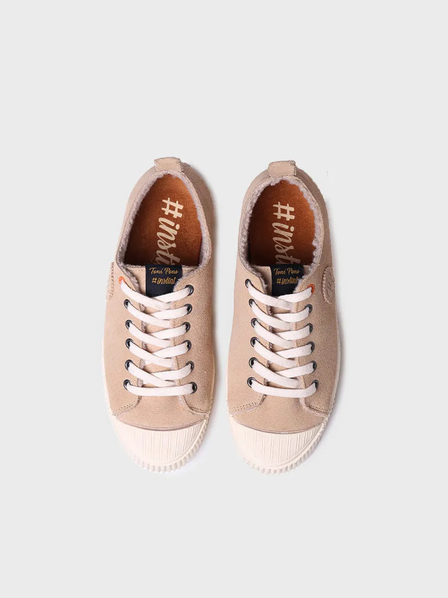 GIZA-SY. Aquesta sabatilla per a dona s' elabora en serratge. La sola és plana, té 3 cm de gruix i està feta de goma antilliscant. La plantilla interior és extraïble i està folrada en teixit transpirable per a més comoditat. L'interior està folrat en un càlid borrego per protegir-te dels dies més freds.