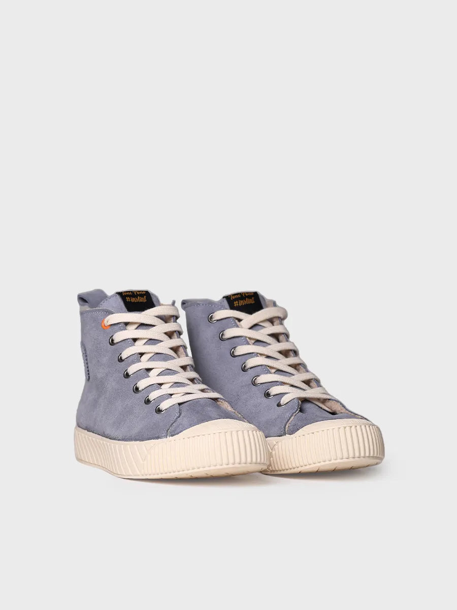 GENOVA-SY. Diese Damenstiefelette ist aus Spaltleder gefertigt. Die Sohle ist flach, 3 cm dick und aus rutschfestem Gummi gefertigt. Die Innensohle ist herausnehmbar und für mehr Komfort mit atmungsaktivem Stoff gefüttert. Es ist mit einem warmen Lammfell gefüttert, um Sie vor den kältesten Tagen zu schützen.