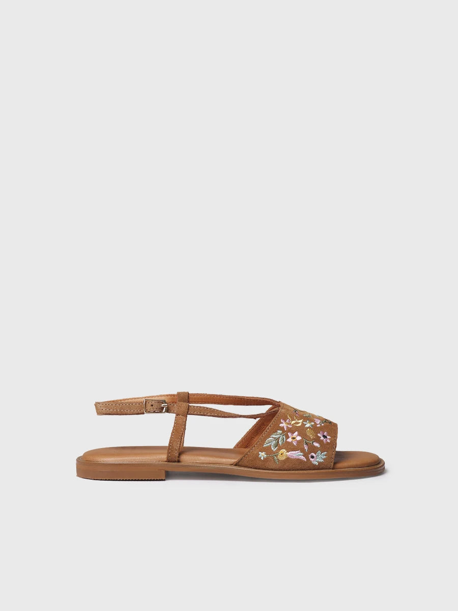 Flache Damensandalen aus besticktem Spaltleder | BASILEA