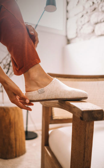 Available in a variety of colours and finishes, the women’s recycled house slippers adapt to the foot with a comfortable fit and lightweight construction. Their timeless design combines functionality and style, making them an essential choice to enjoy home life responsibly and authentically.