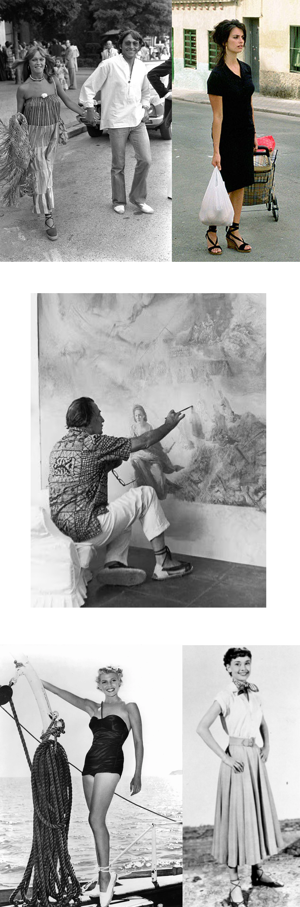 Marisol y Antonio Gades, Penelope Cruz, Dalí, Rita Hayworth y Audrey Hepburn (de izquierda a derecha). Imagenes de archivo de Vogue, Getty Images i Everett
