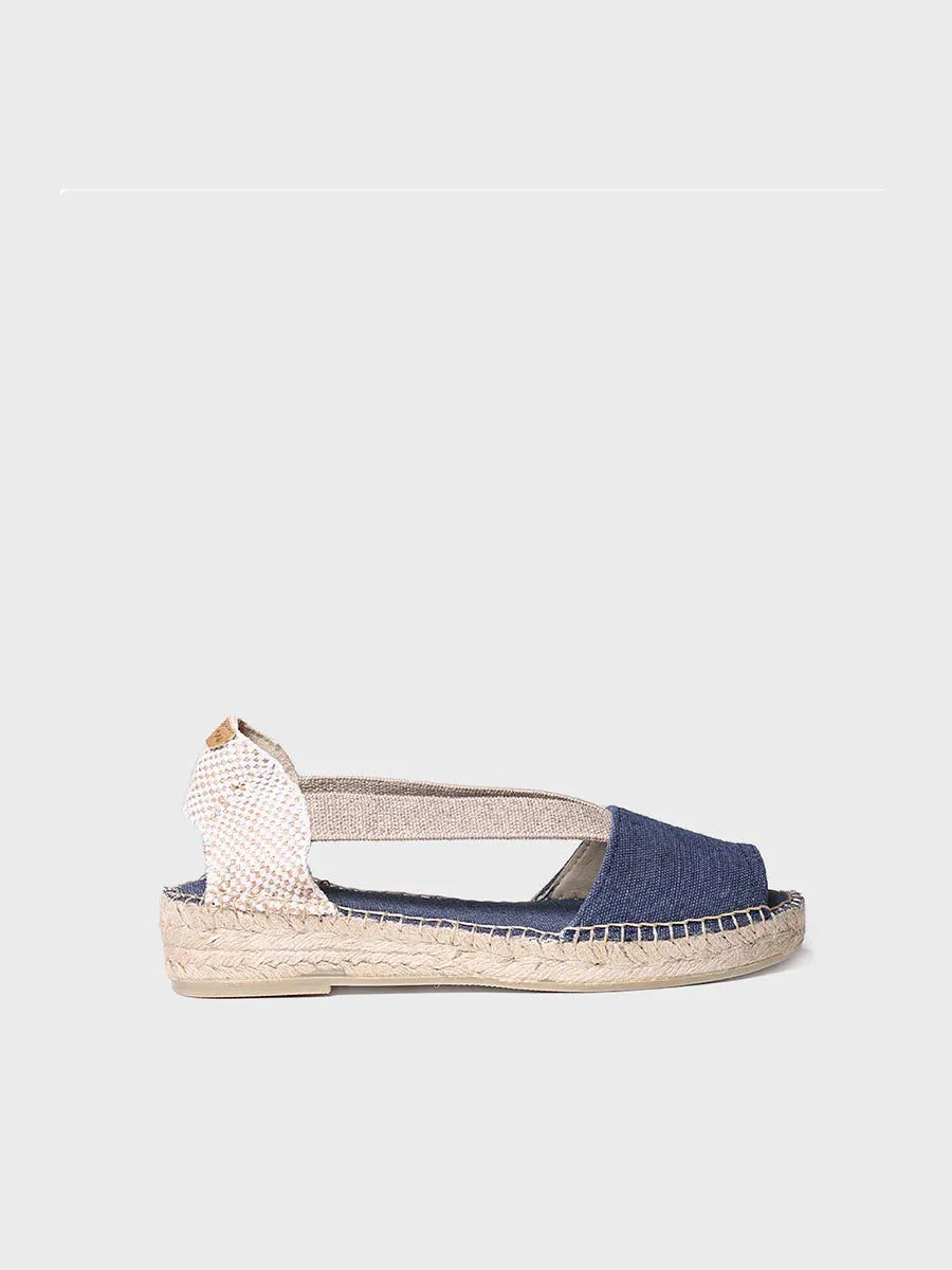 ELORA-V. Esta alpargata en tejido de algodón para mujer se elabora en tonos lisos. La cuña de yute tiene una altura de 3,5 cm. La base de la suela está hecha de goma antideslizante. Cuenta con dos tiras elásticas laterales que dan una sujeción óptima al pie. La plantilla interior está forrada en tejido para mayor comodidad. Este diseño está cosido a mano en España. Es un modelo vegano.