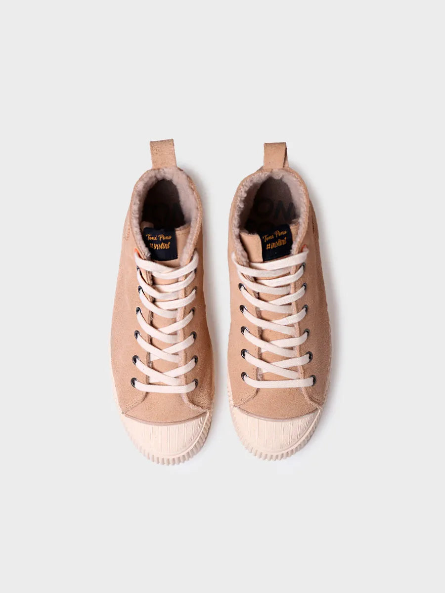 GENOVA-SY. Este botín para mujer se elabora en serraje. La suela es plana, tiene 3 cm de grosor y está hecha de goma antideslizante. La plantilla interior es extraíble y está forrada en tejido transpirable para mayor comodidad. Está forrada en un cálido borrego para protegerte de los días más fríos.
