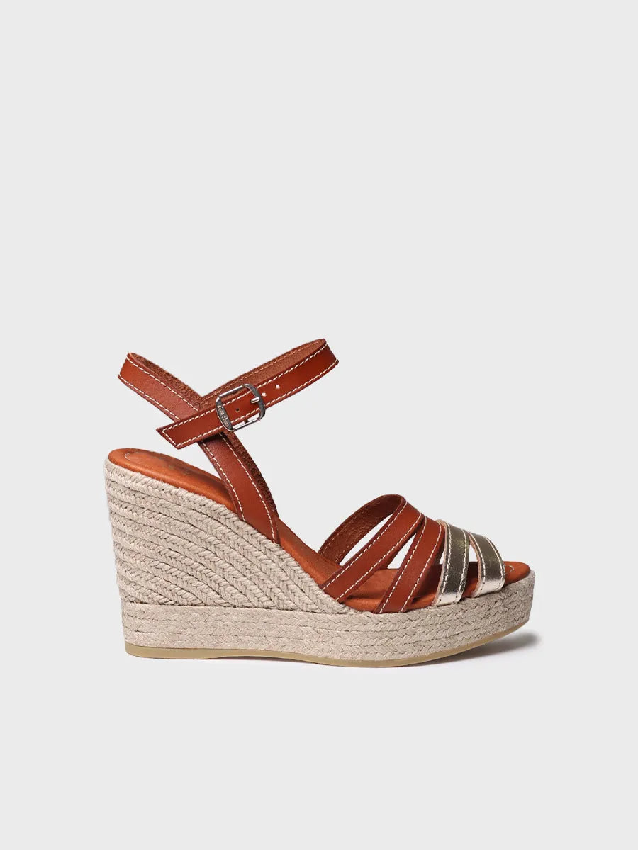 Alpargata abierta de mujer en cuero y color platino con cuña | OCTAVIA