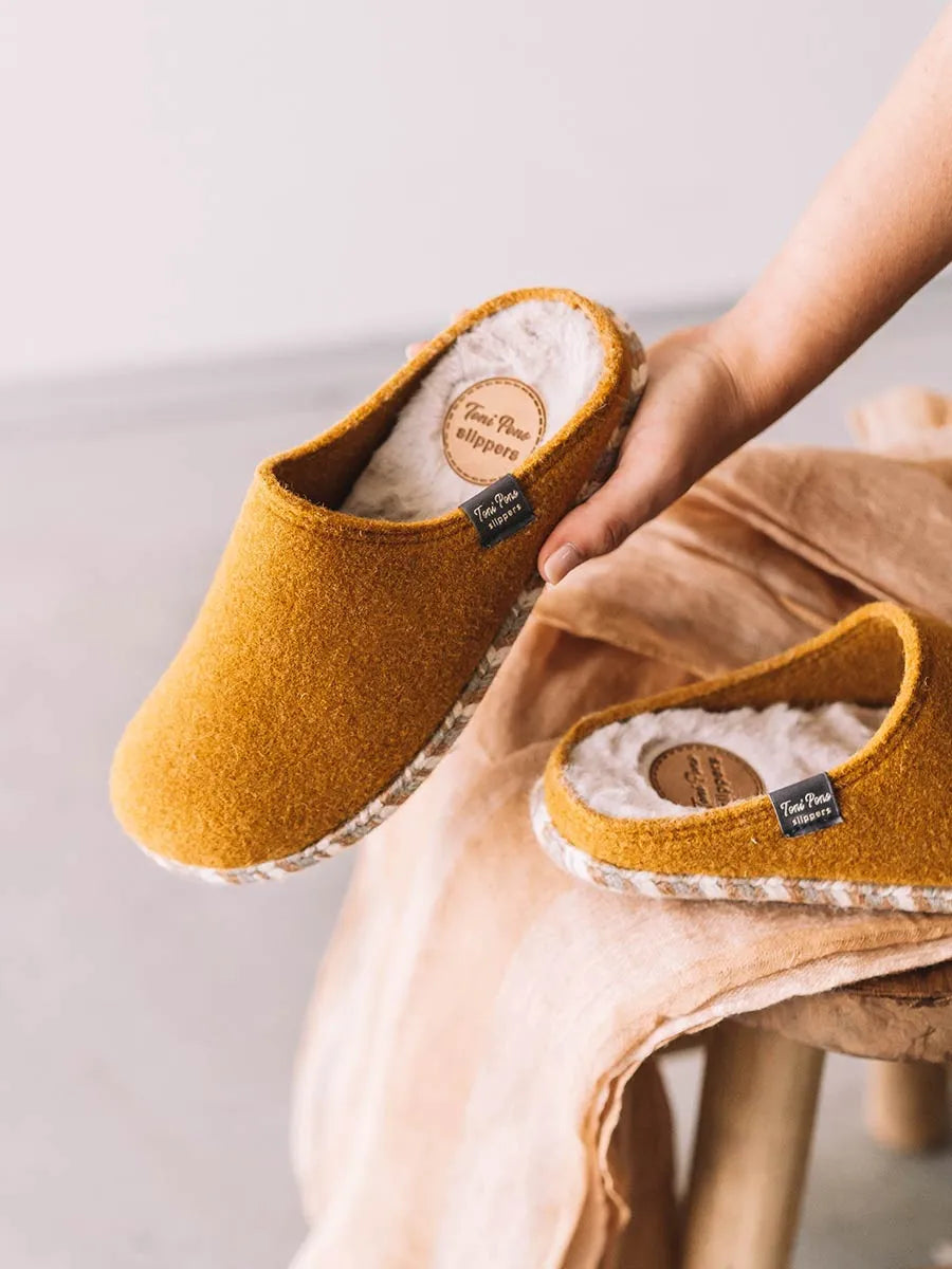DELI-FP. Esta zapatilla de mujer en fieltro es muy cómoda gracias a su suela flexible. La plantilla está forrada en suave pelo sintético, lo que le da una gran calidez al pie. Este modelo está disponible en varios colores. Un clásico de nuestra colección de slippers.